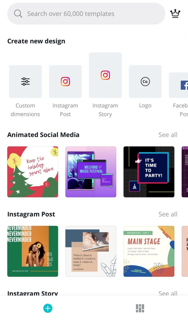 Canva is a very good app which enables you to choose from over 1,000 free templates and designs for the free feature. And millions more for the premium feature. However, the app only operates online. Which means you need internet connectivity to be able to use this app. And also, after the free trial expires, you barely get to enjoy the app as you have to adopt other tricks to be able to save new designs offline on your phone. You can get this app on the google play store or Apple AppStore.