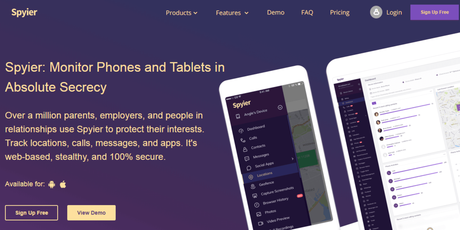 Spyier is a stylish and user friendly phone tracking app featuring dozens of new spying features. It has everything one would want to expect from the top quality phone tracking app.