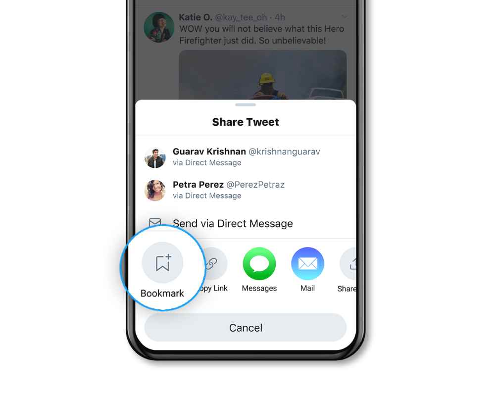 How to Bookmark a tweet on an iPhone app