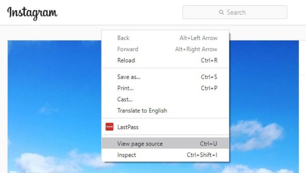 Step 2. Right-click near the image, and a menu will pop up; select the view page source.