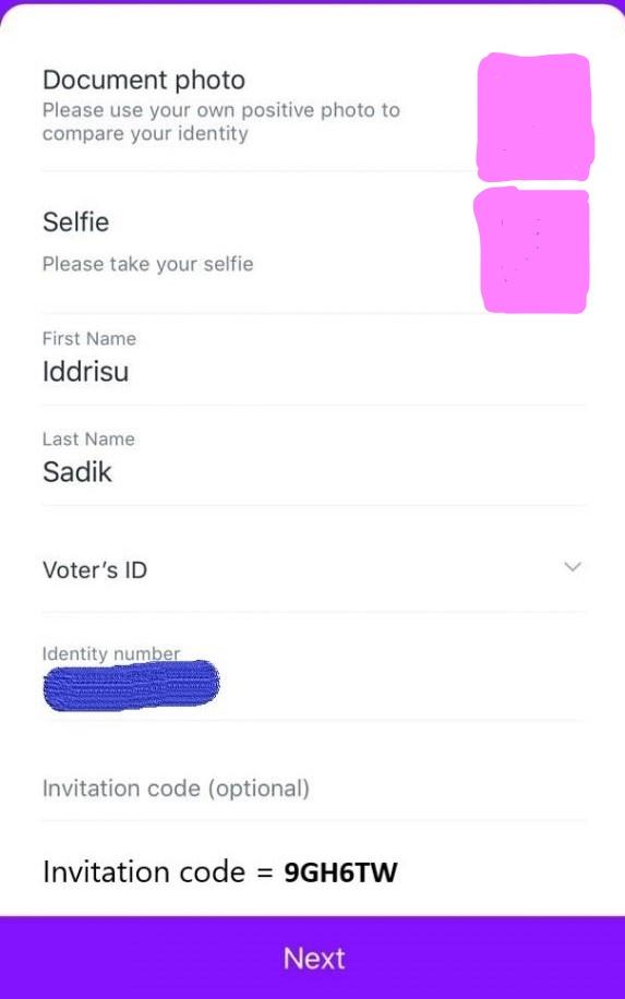 Here you’ll be asked to enter the required details make sure to enter your correct information and when you get to the referral section you can put in this code 9GH6TW, as your referral so that you can get an instant 600 points. These points will help speed your transactions and also get you some cashback when topping up the Airtime.