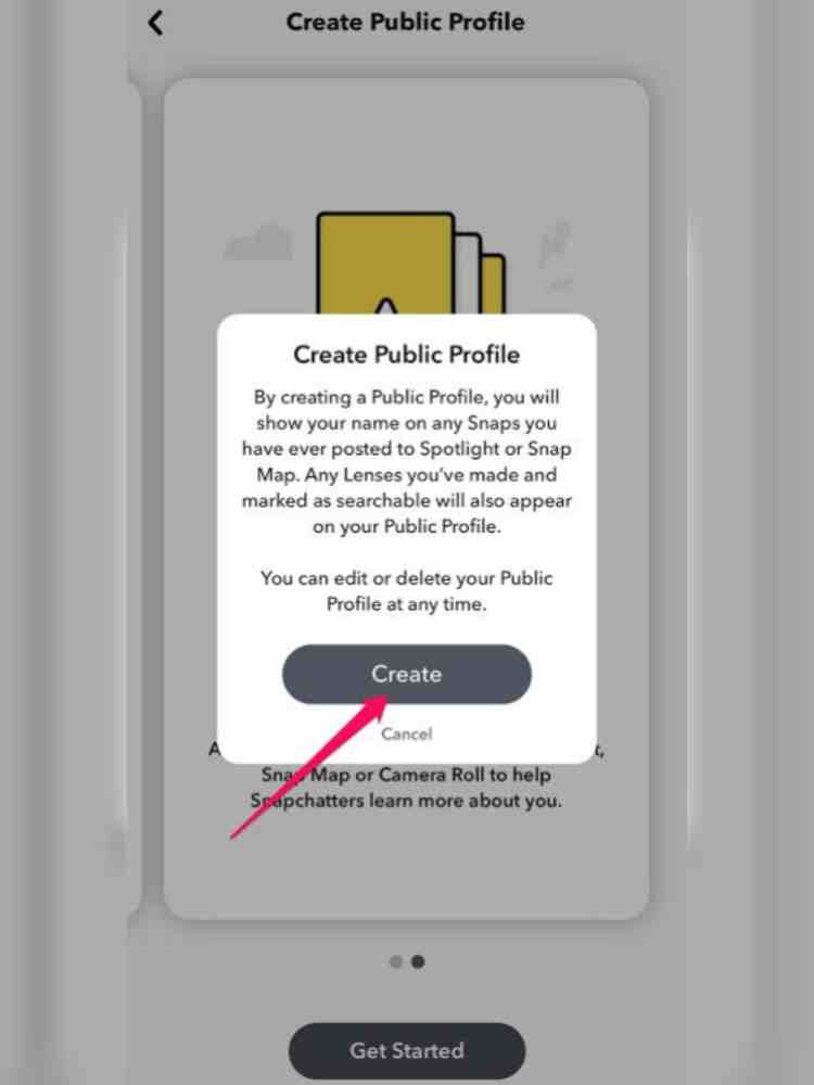 - You’ll see a page describing public profiles. Tap Continue (or swipe to the next page), then Get Started.