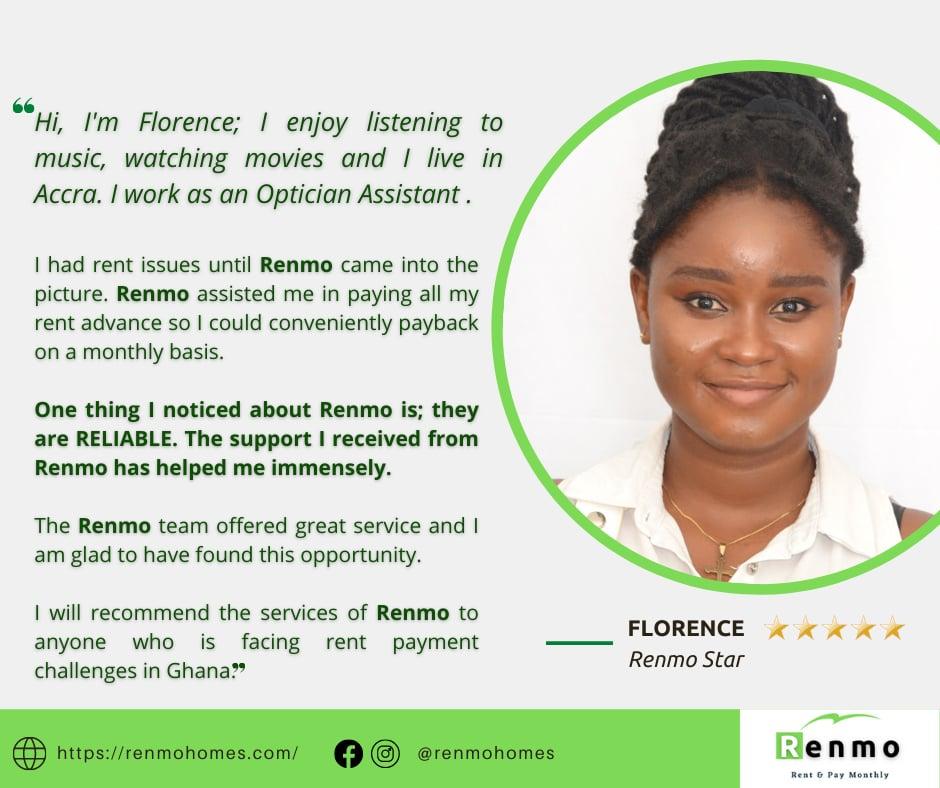So, whether you are looking to renew your rent advance or looking to move to a new home, let Renmo cover that rent advance for you so you pay back monthly. You can also continue to check on their website for some of the few listings. You can reach Renmo via whatsapp on https://wa.link/dji020 or email via hi@renmohomes.com You can also call the Renmo team on weekdays (8:30am-5pm) via 0592040292
