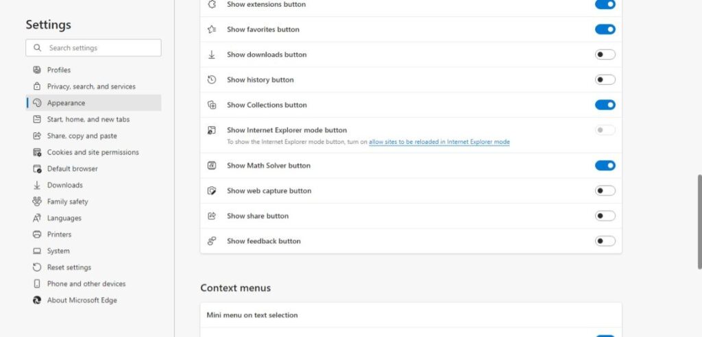 - Select Appearance on the left side of the screen and then scroll to the button and toggle on Show Math Solver