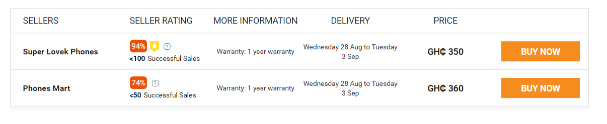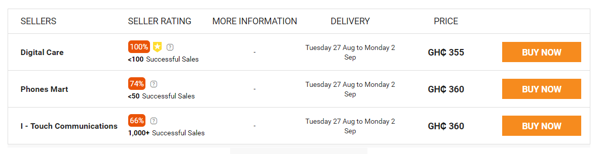 The Itel P32 can be bought from three stores on the Jumia Ghana website at the below prices: