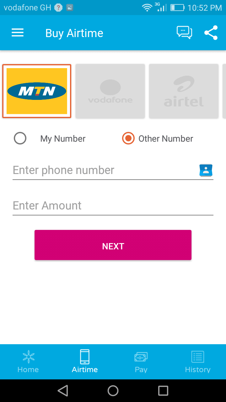 - Buy airtime for different phone networks with one wallet