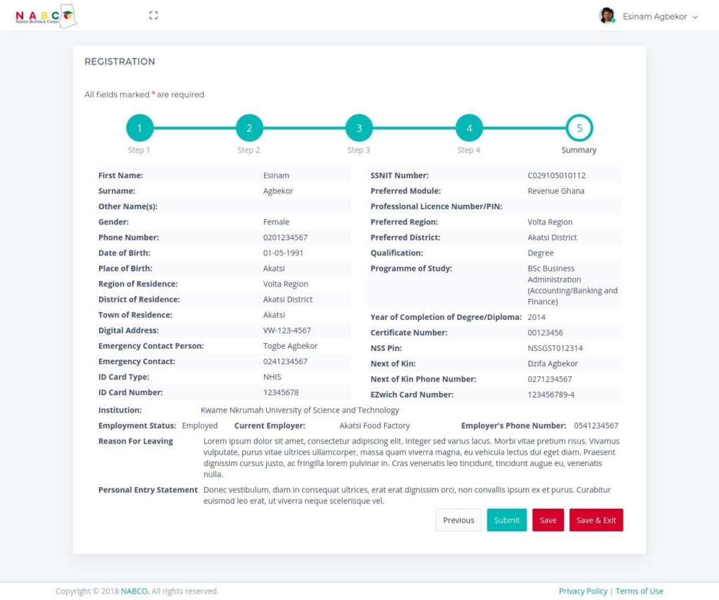 The NABCO is opened to all Ghanaians who have already discharged their national service obligations and not for an applicant who is yet to do their national service.