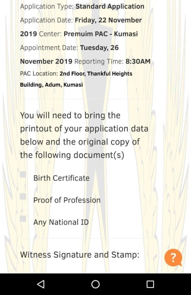 Download Sample Ghana Passport Online Application form