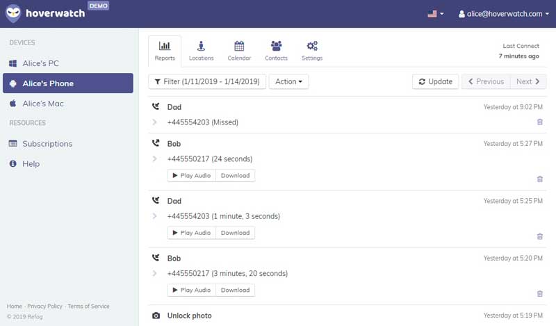 For incoming and outgoing calls, parents can view caller identification, and listen to recordings of the conversations. Hoverwatch also allows access to internet activity, as well as any notes or events added to the calendar. Lastly, one can also see the entire contact list.