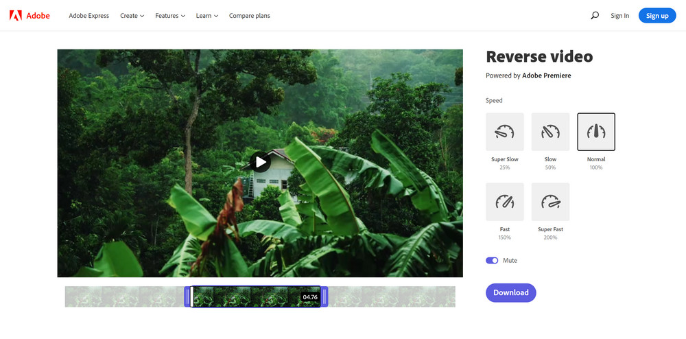 If you are not a fan of software downloads, you can simply use a video reverser online, for example, the one produced by Adobe. It can help you reverse a video on your browser directly. Sounds easy, right? But one thing you should know is that the uploading process can be very slow, especially when you are editing a large video file. Here’s how to use Adobe to reverse a video online.