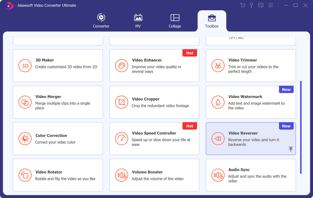 If you want to reverse certain part of your video, then Aiseesoft Video Converter should be your first choice. It is a multi-feature video converter that integrates various video editing tools, such as video reverser, trimmer, speed controller, and compressor. And it is compatible with both Windows PC and Mac.