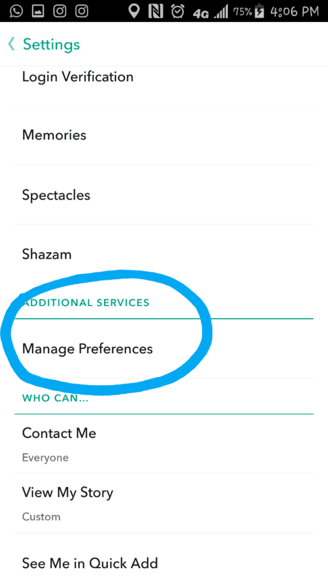 - Tap on the Settings cog in the upper right corner. Under Additional Services, tap on Manage Preferences