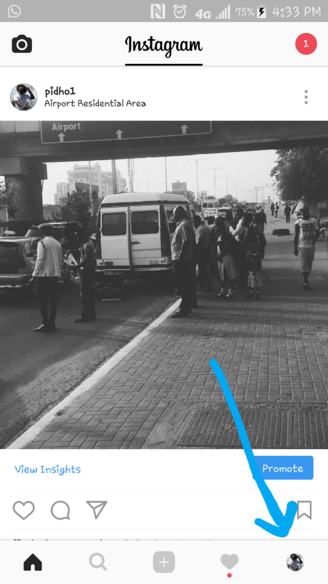 - Open Instagram and go to your profile by tapping your profile photo on the lower right of the screen
