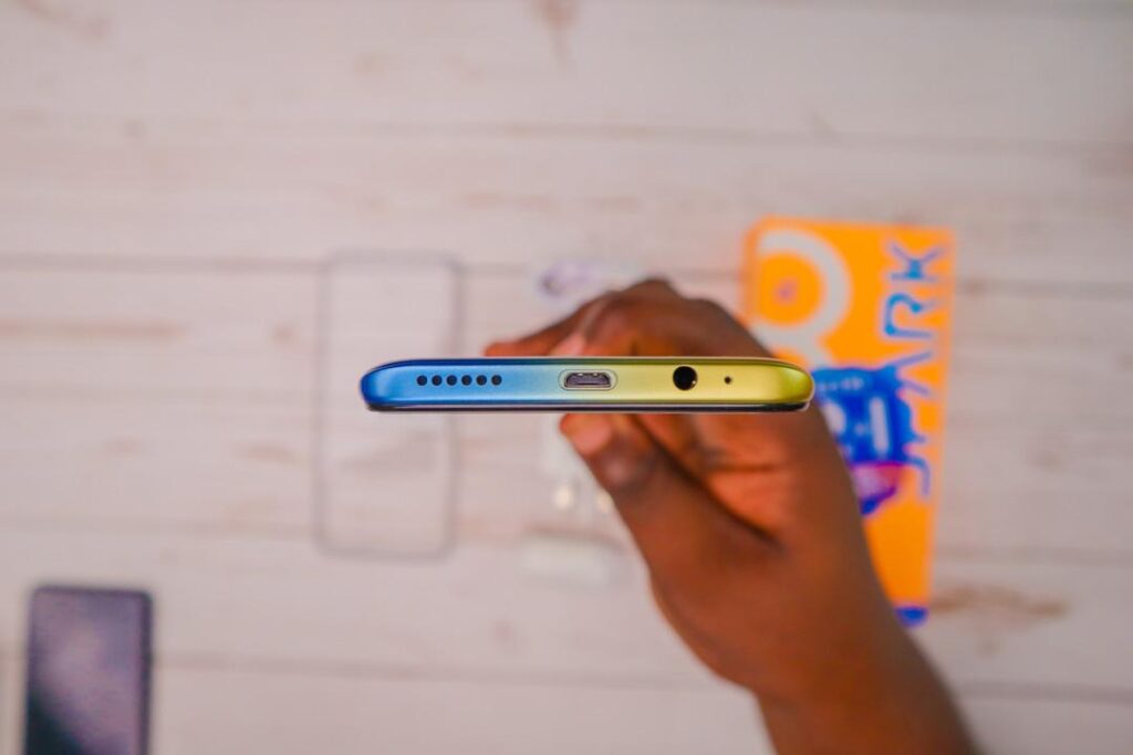 At the back of the TECNO Spark 8p itself, there is a very new and welcomed shiny design. You can also see in the photos that there is a super shiny camera cut out made of plastic.