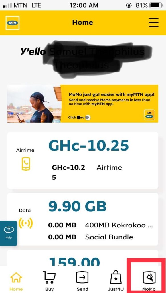 - Once you have confirmed the number, tap on MoMo at the lower right corner of the screen.